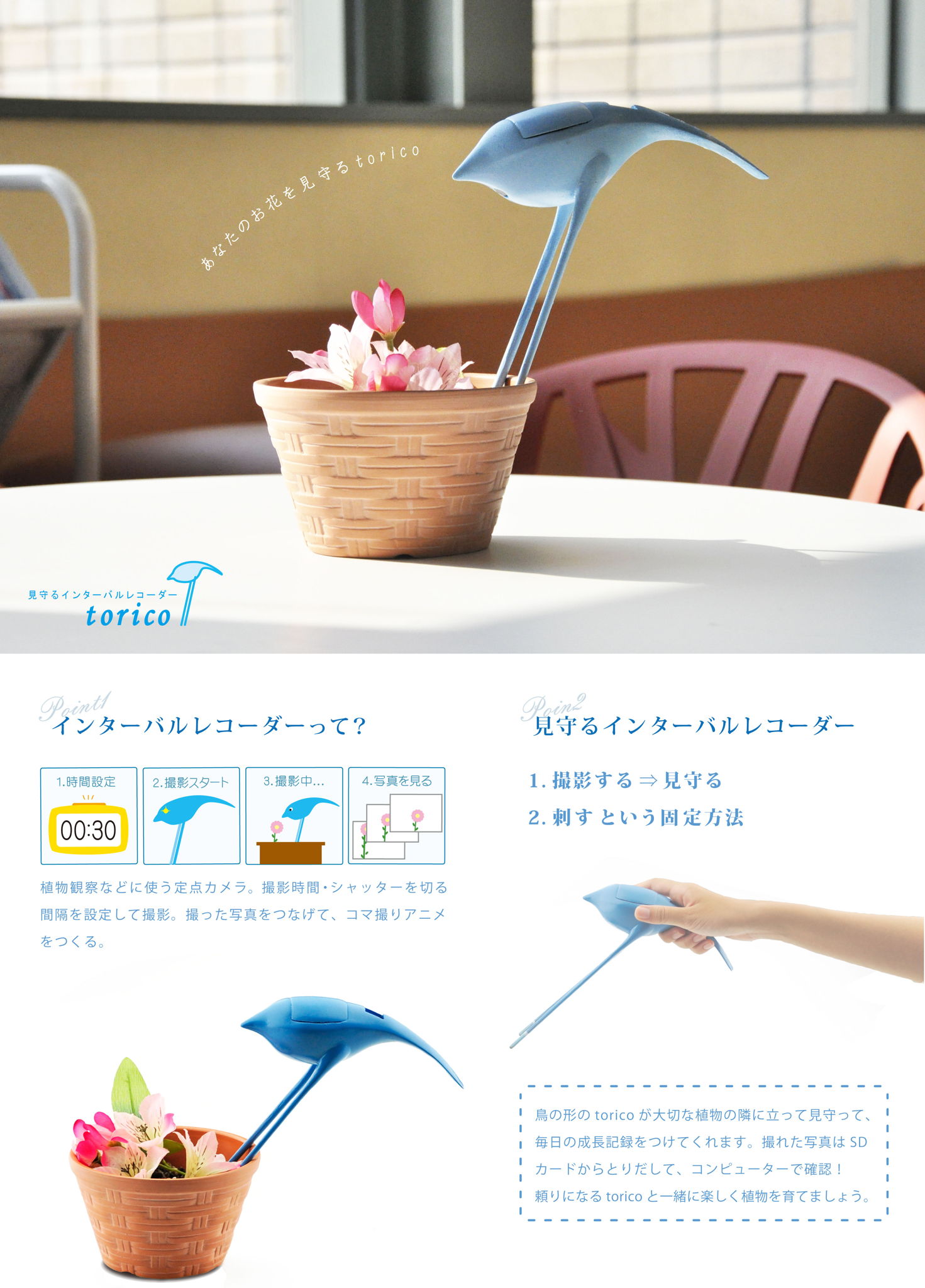 植物観察に、植木鉢に刺して使うという新たな形の提案です。