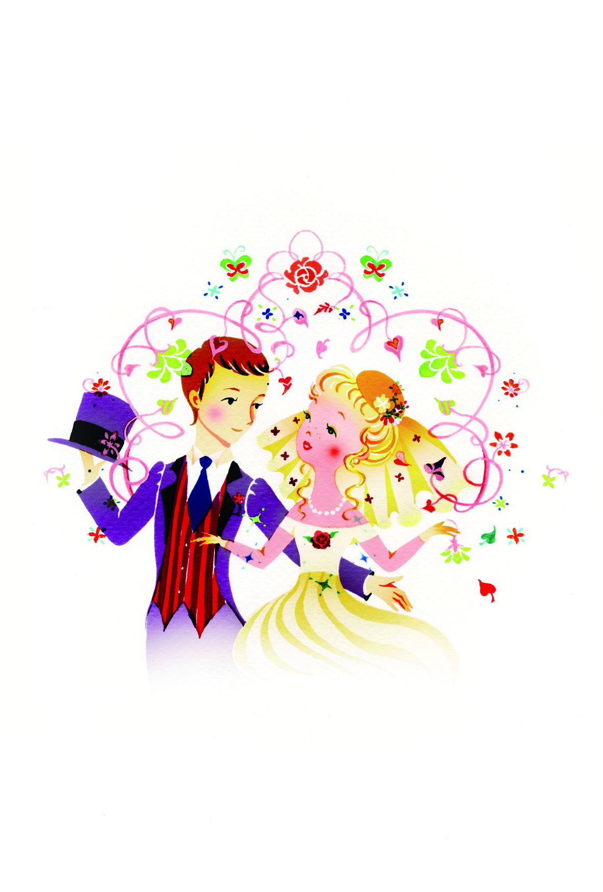 お姫様と王子様のような幸せな恋人たちのイメージで描きました。
