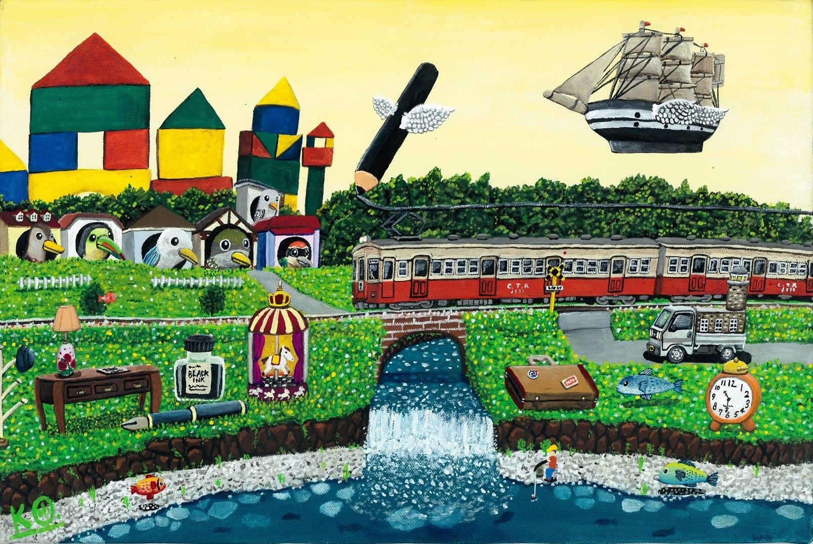 子供の頃の親戚の家に電車で出掛ける時のような「ちょっとした長旅」的な感覚と「自分が見たい/見たかった鉄道風景」を念頭に置いて描きました。
