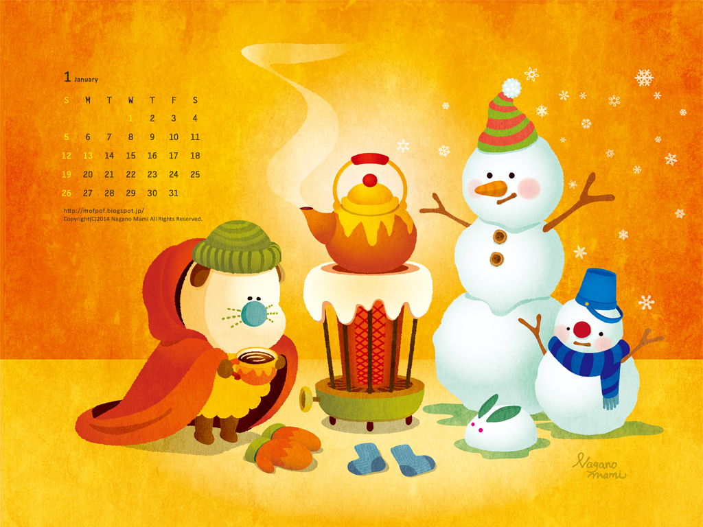 1月は寒々しい色味より温かいほうがいいなと思い、ストーブを中心に考えて描きました。