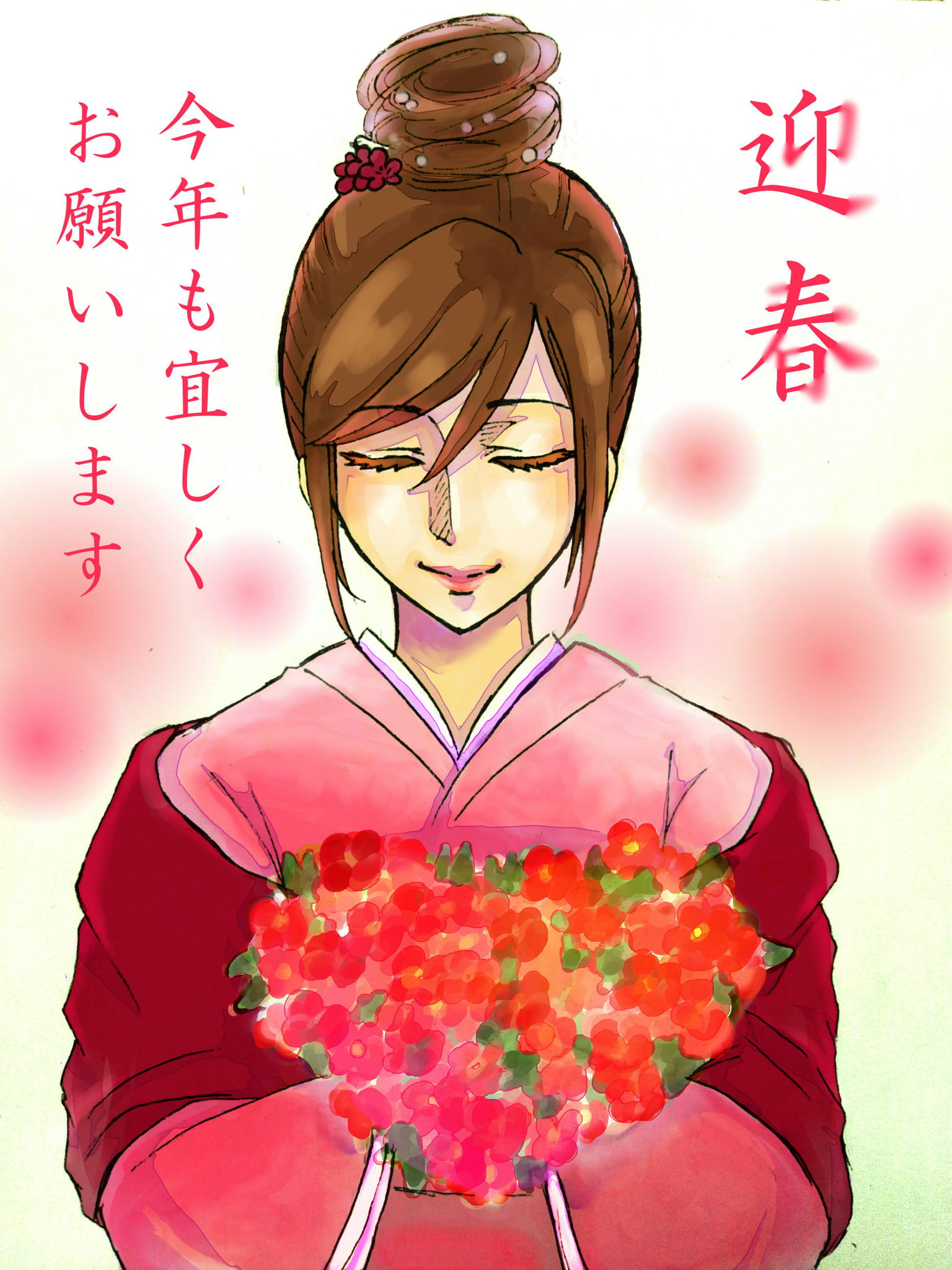 今年の年賀状二つ目です。初めて水彩っぽくしてみました。色々と試して遊びながら描きました!!馬要素は…ありません。