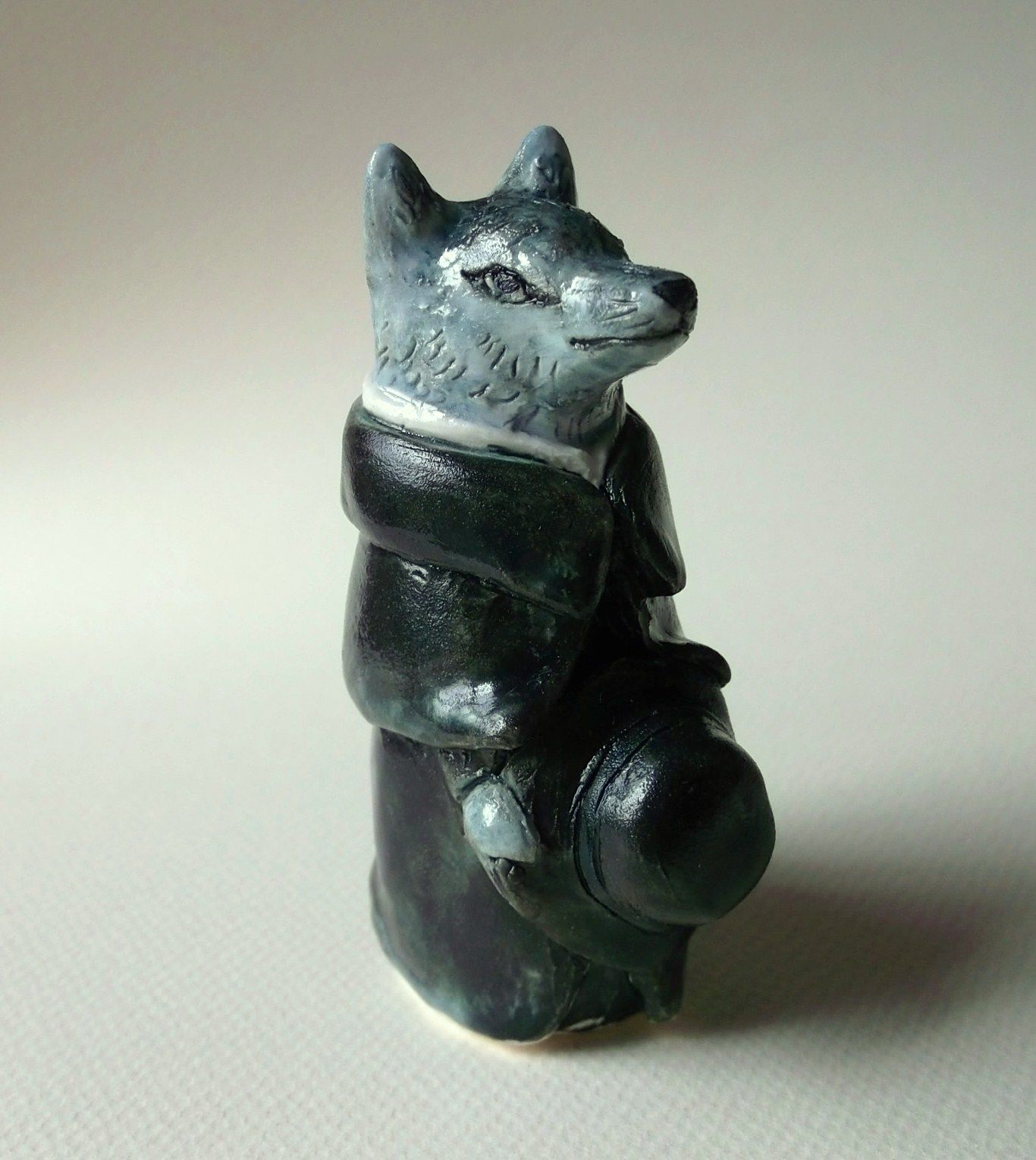 コミカルで可愛らしくデフォルメされた白い豆猿達に、天然木の飾り台をお付けします。