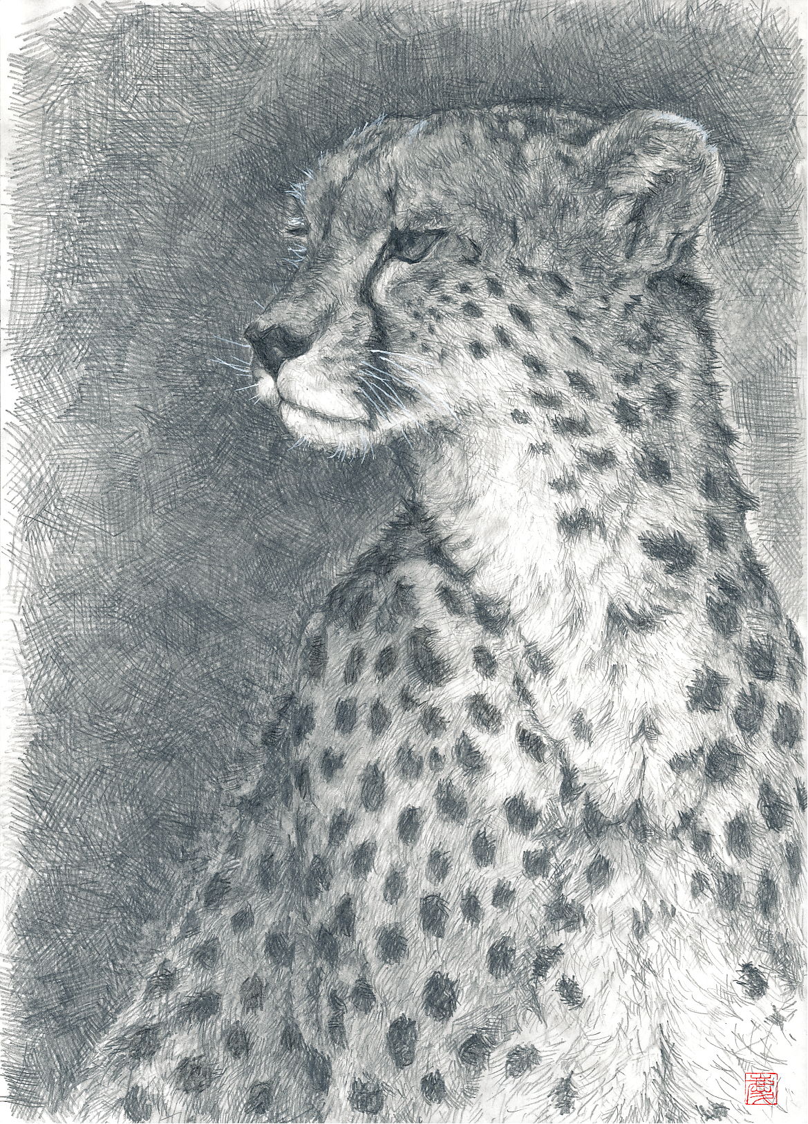 全て鉛筆で描き、髭の部分はグアッシュです。