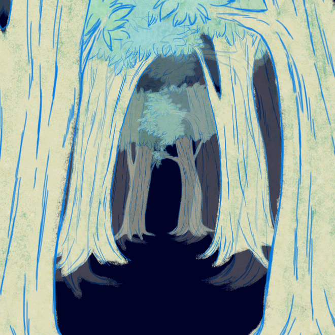 暗闇の森での不安。