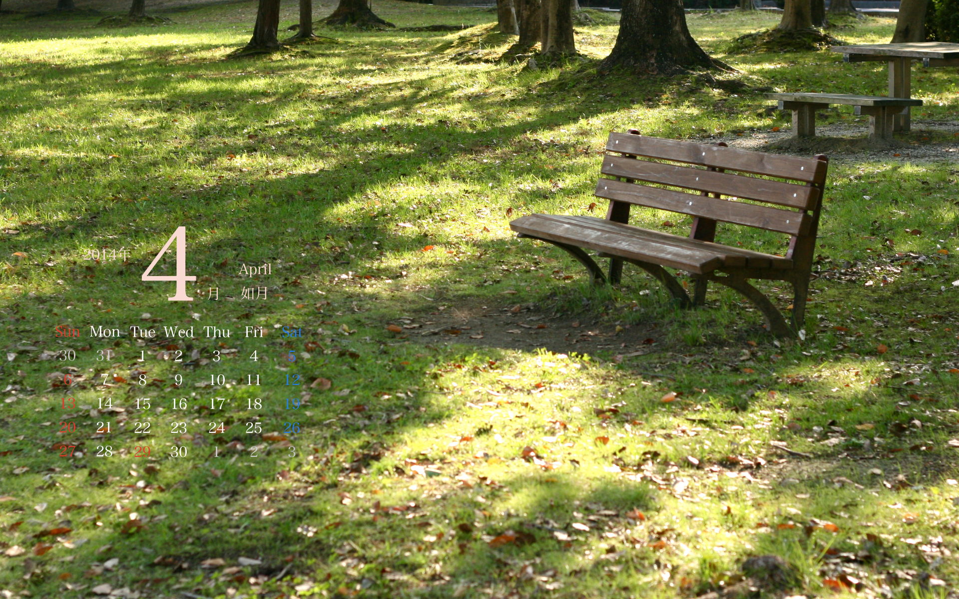 2014年4月PC壁紙カレンダー2(1920×1200)です。