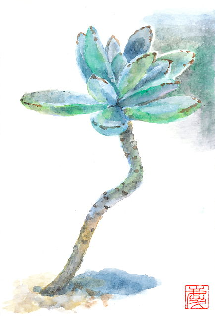 多肉植物の月兎耳を描いた作品です。