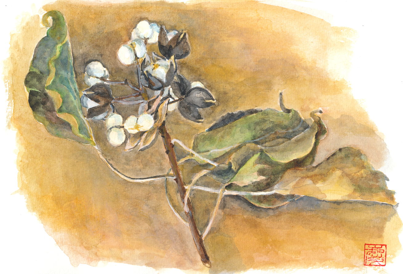ナンキンハゼの実と葉っぱを水彩画で描いてみました。