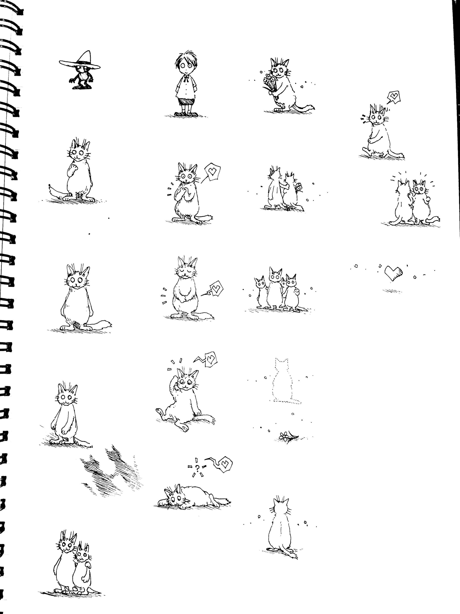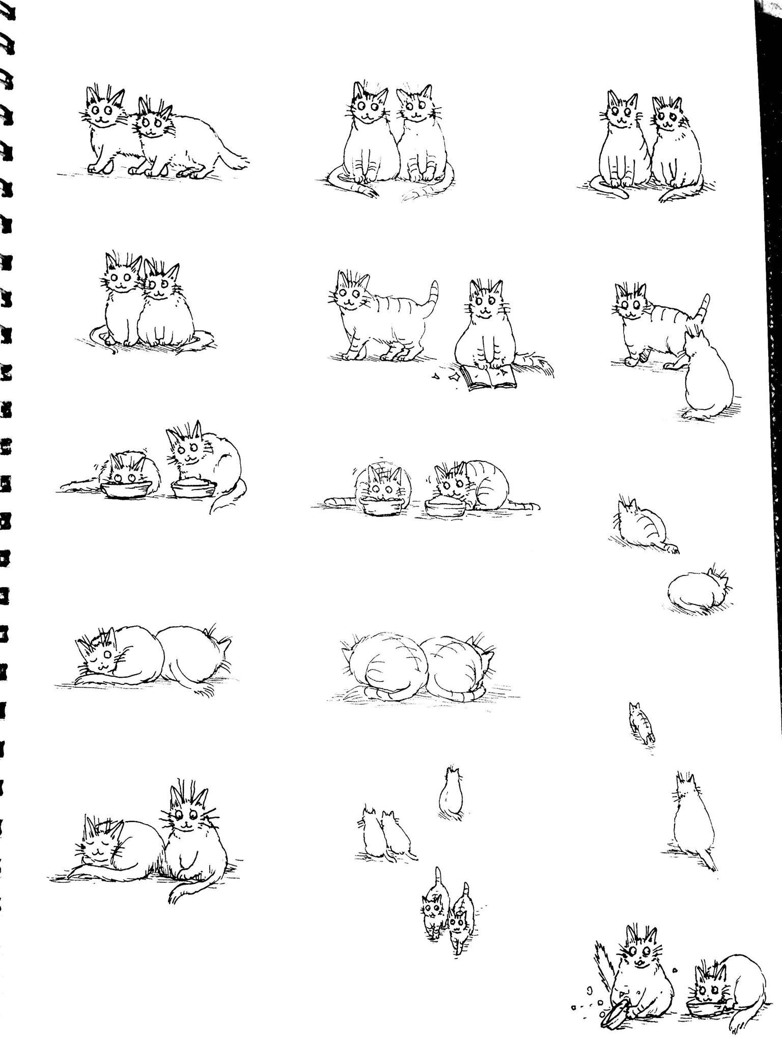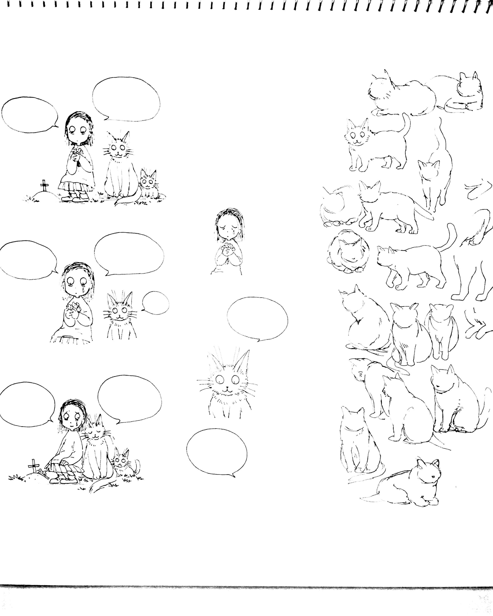 ブログに載せている読み切り(ミニストーリー)の為のらくがきです。お話を考えながららくがきをしていき、そこから好きなシーンをチョイスしてミニストーリーを作っていきます。その日浮かんだ話を忘れない為の公開メモです。妖精の絵はそのままらくがきとして載せていました。猫が沢山いるページは確か公開しなかったものです。また、よく端に飼い猫を見ながら練習で落書きをしてます。