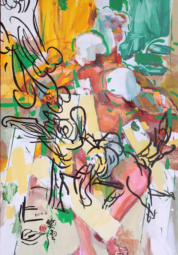 水墨ばかりをやっていて、少し飽きたところでこの絵に色をさした。