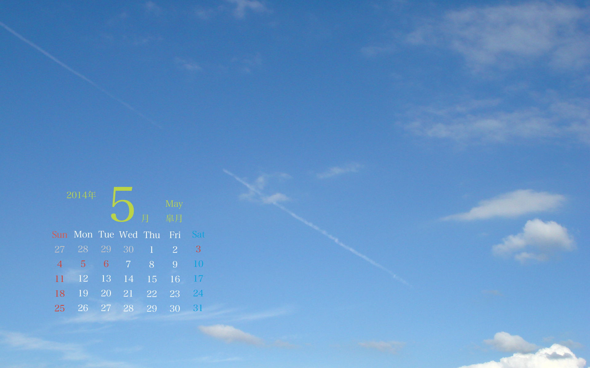 2014年5月PC壁紙カレンダー1(1920×1200)です。