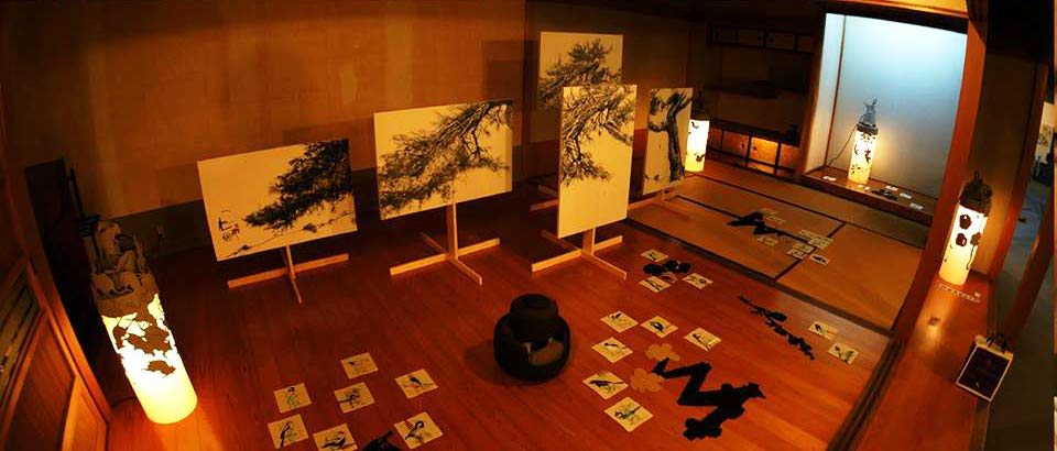 約90×60cmの和紙パネル5枚を構成して一つの松の図を提示しました。
