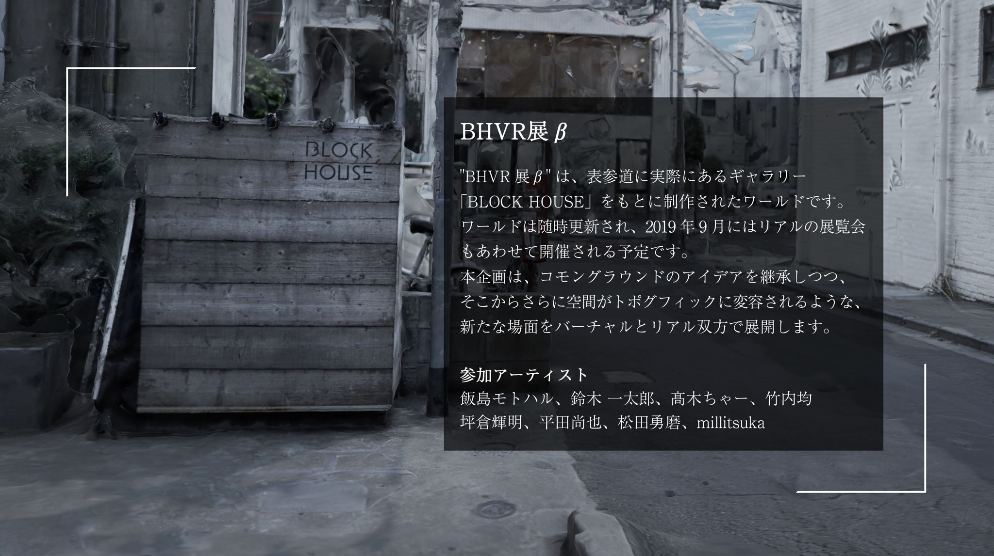 ”BLOCK HOUSE VR”は、表参道に実際にあるギャラリー「BLOCK HOUSE」をもとに制作されたワールドで行われるプレイベントです。ワールドは随時更新され、9月にはリアルの展覧会もあわせて開催される予定です。