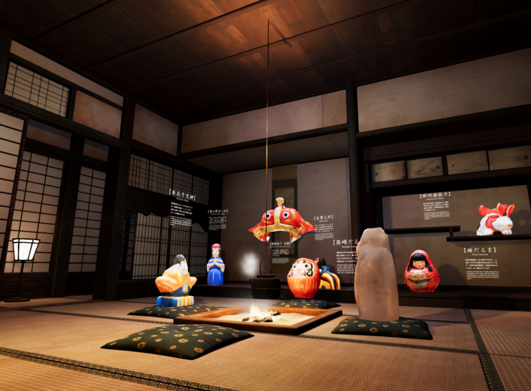 ●郷土玩具は、体験者が一定の距離まで近づくことで姿を表し、解説を読むことができるようになります。