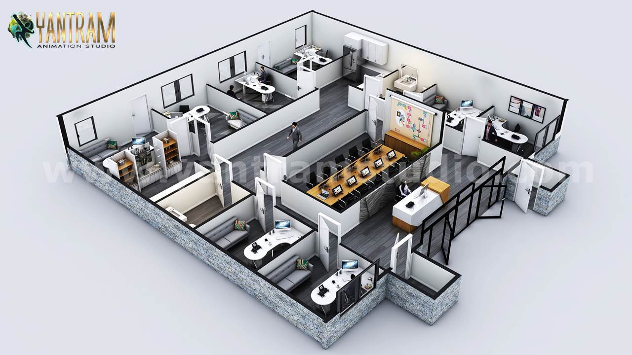建築可視化スタジオによる古典的なインテリアを持つ3 d商業オフィスフロアプランデザイナー