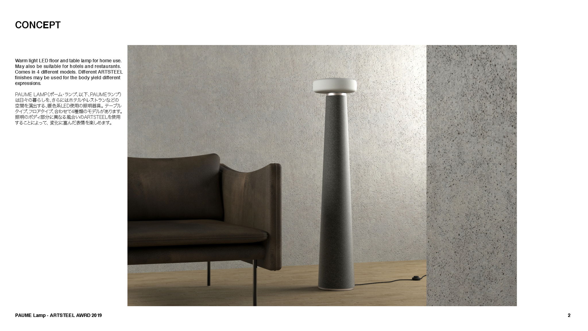 メイン写真左は通常時、右は左を立体化させたものです。通常時は薄く立て掛けて置いておくことが出来るので場所を取らないため、独り暮らしでも生活の邪魔にならない大きさです。また、自由自在にお皿の高さを変える事が出来るので浅めに使いたいときはあまり変化させず、深めに使いたい時はぐいっと変化させます。これらは、提灯が折り畳まれている様子からインスピレーションを受けました。