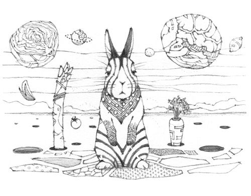 「ひらめきの物理学」扉絵 第8章「遠心力に関するパラドックス」ドローイング