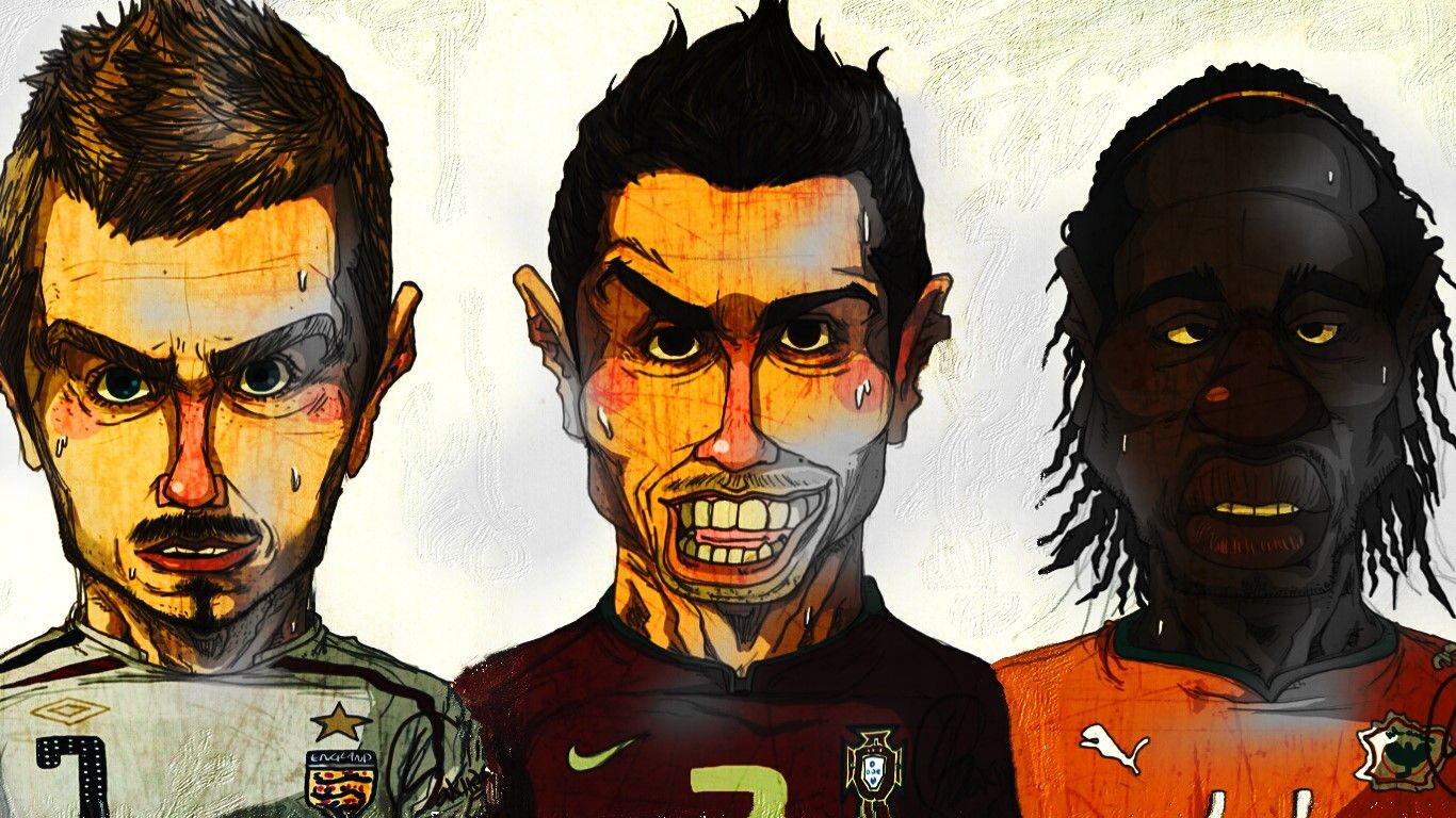 デフォルメされた世界のサッカー選手の似顔絵