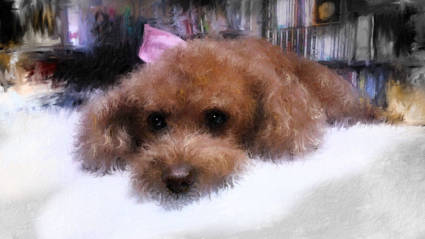 愛犬TiAmoをお絵描きしました、今日の外はシトシト雨もようで、散歩に行けないのが分かるようでつまらなさそうな顔をしてます、それでも可愛い上目づかい僕を見つめてます。
