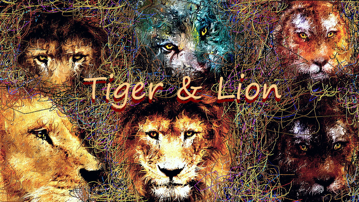 Tiger and Lion トラとライオンの絵をデザインしてお絵描きしました。