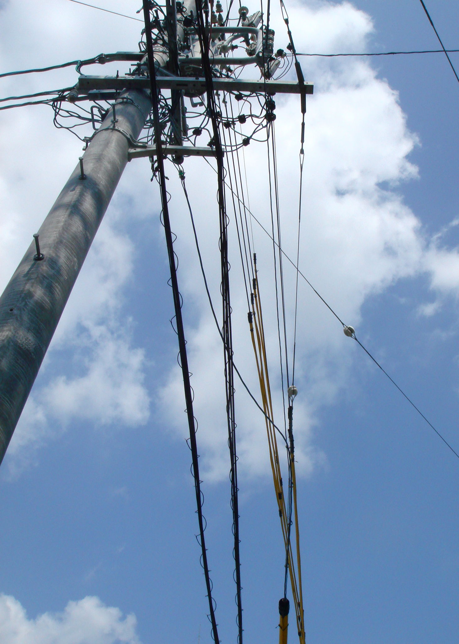 青空と電線の写真です。