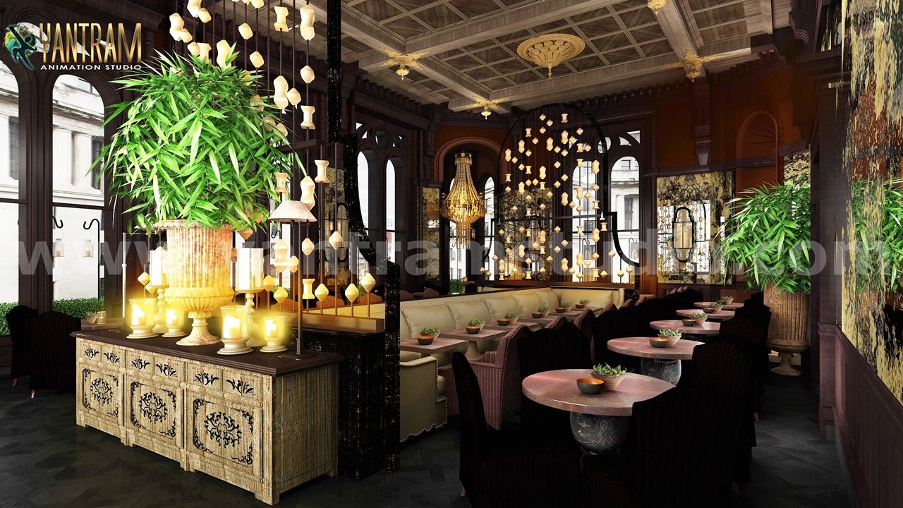 魔法の光、居心地の良いロマンチックなカフェのアイデアデザイン建築ウォークスルーサービスによる3Dインテリアモデリング