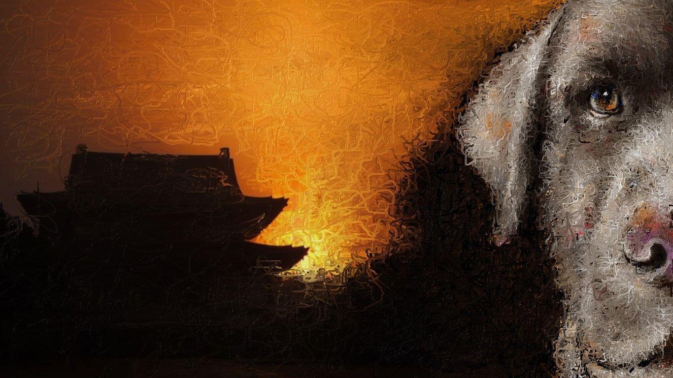 ワンちゃんの絵をデザイン画風にお絵描きしてみました。