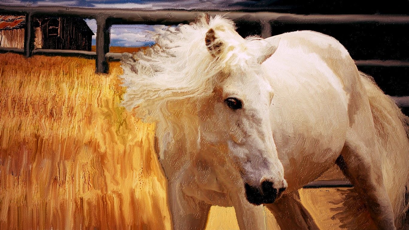 以前に描いた絵ですが、僕の大好きな白馬の絵です、こんな馬にまたがり夏の高原を走り回れたら
