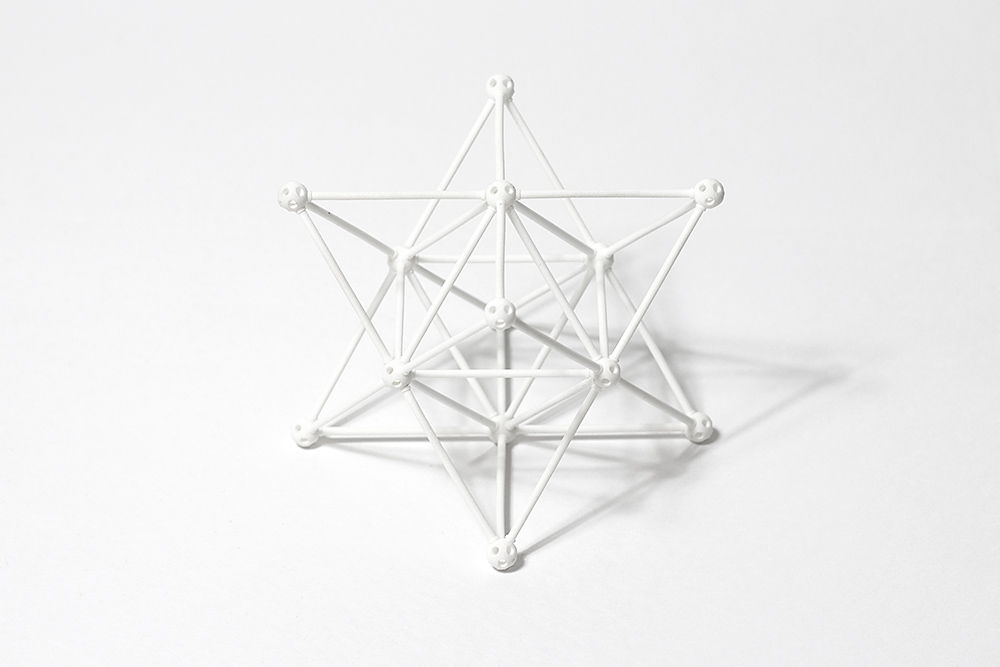 The Sankakkei seed collection consists of 4 seeds which enables you to build the 5 platonic solids, the 5 basic forms Plato described in which every other form is derived. I used the Star Tetrahedron ‘seed’ (node) for my prototype, which enables you to build the Tetrahedron, Octahedron, Star Tetrahedron, Vector Equilibrium, Isotropic Vector Matrix, 64-Tetrahedron Cube and any other structure with tetrahedronal axis.