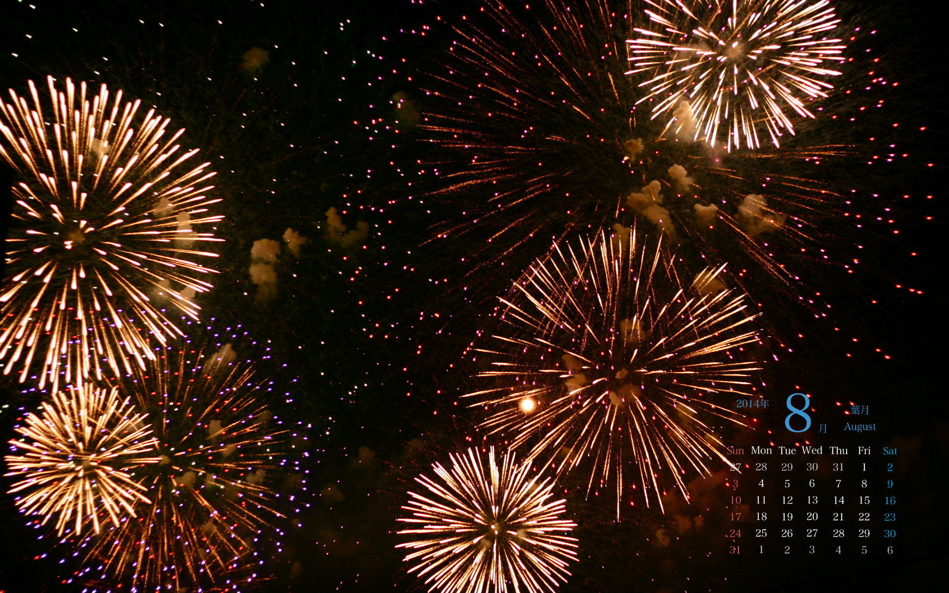 2014年8月PC壁紙(カレンダー付き)2(1920×1200)