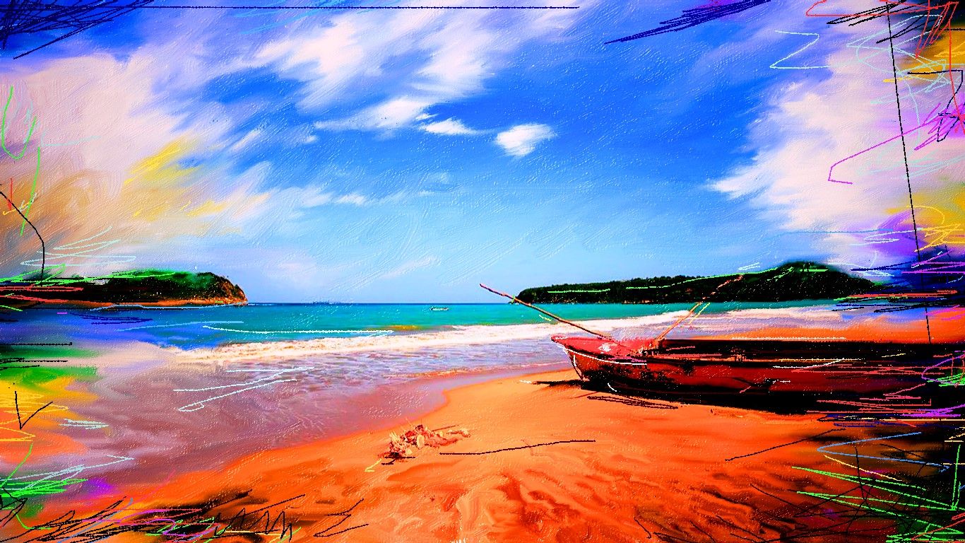 以前に描いた南の海辺の絵を、色編集加工してみました。