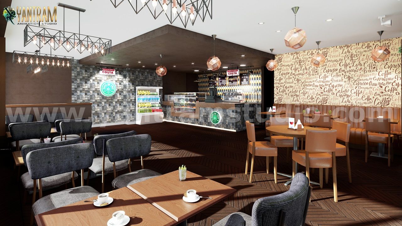 手頃な価格で革新的なコンセプトを備えた最高のユニークなスタイルのカフェ&バー3Dインテリアレンダリングデザインを提供しています。 期待どおりに、より良いサービスを提供するためのニーズを把握できます。 最新のアイデアでカフェバーをデザインしましょう。 現在、人々は3D Architectural Designカフェバーで友人と過ごしています。