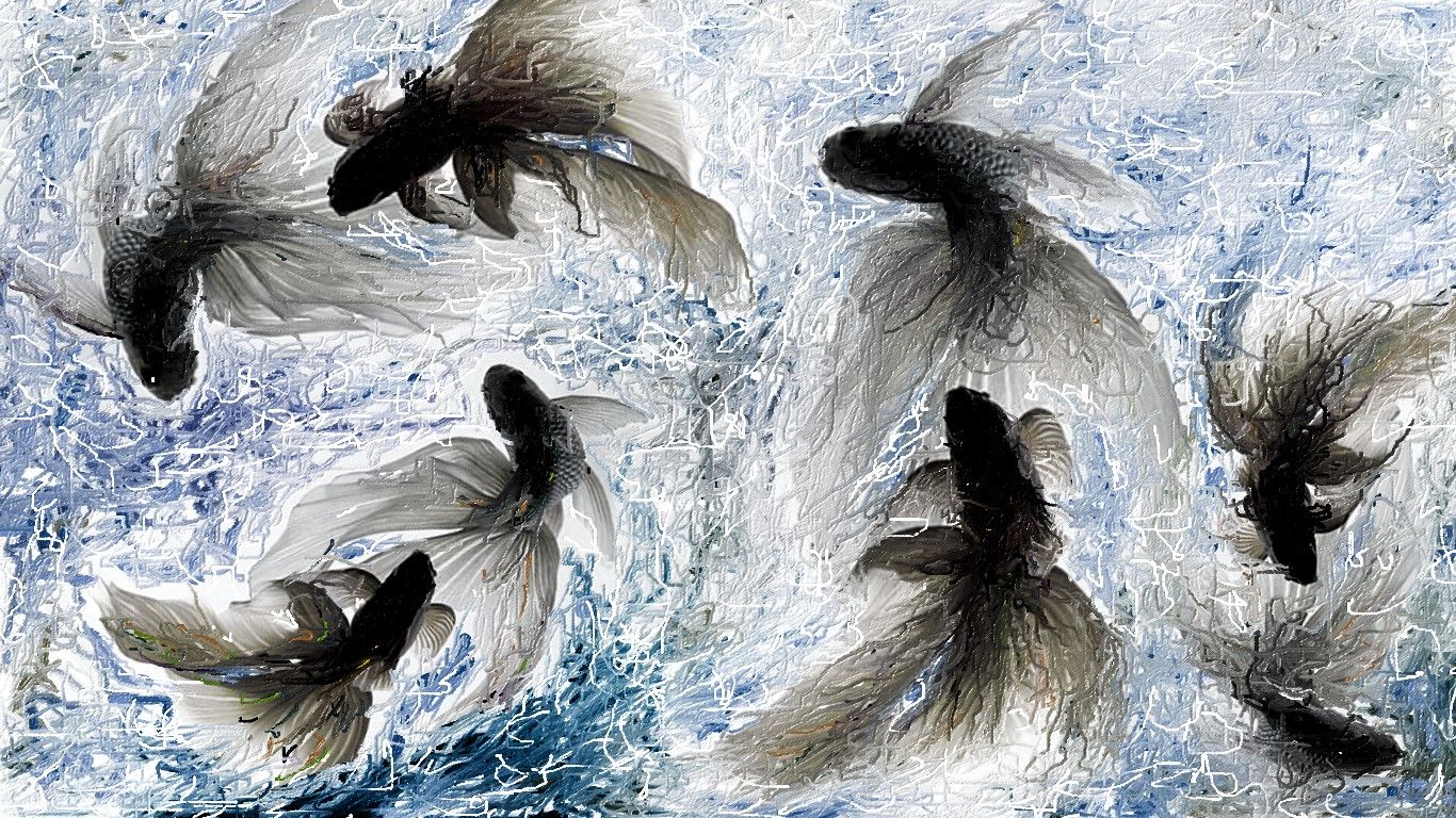 涼しげなカラーでお絵描きしました、懐かしい、夏の夜店で金魚すくいをしてビニール袋に揺られながら帰宅、青い縁の吹きガラスの金魚鉢に入れてやると元気よく泳ぐ金魚達姿を想像しながら、お絵描きしてみました。