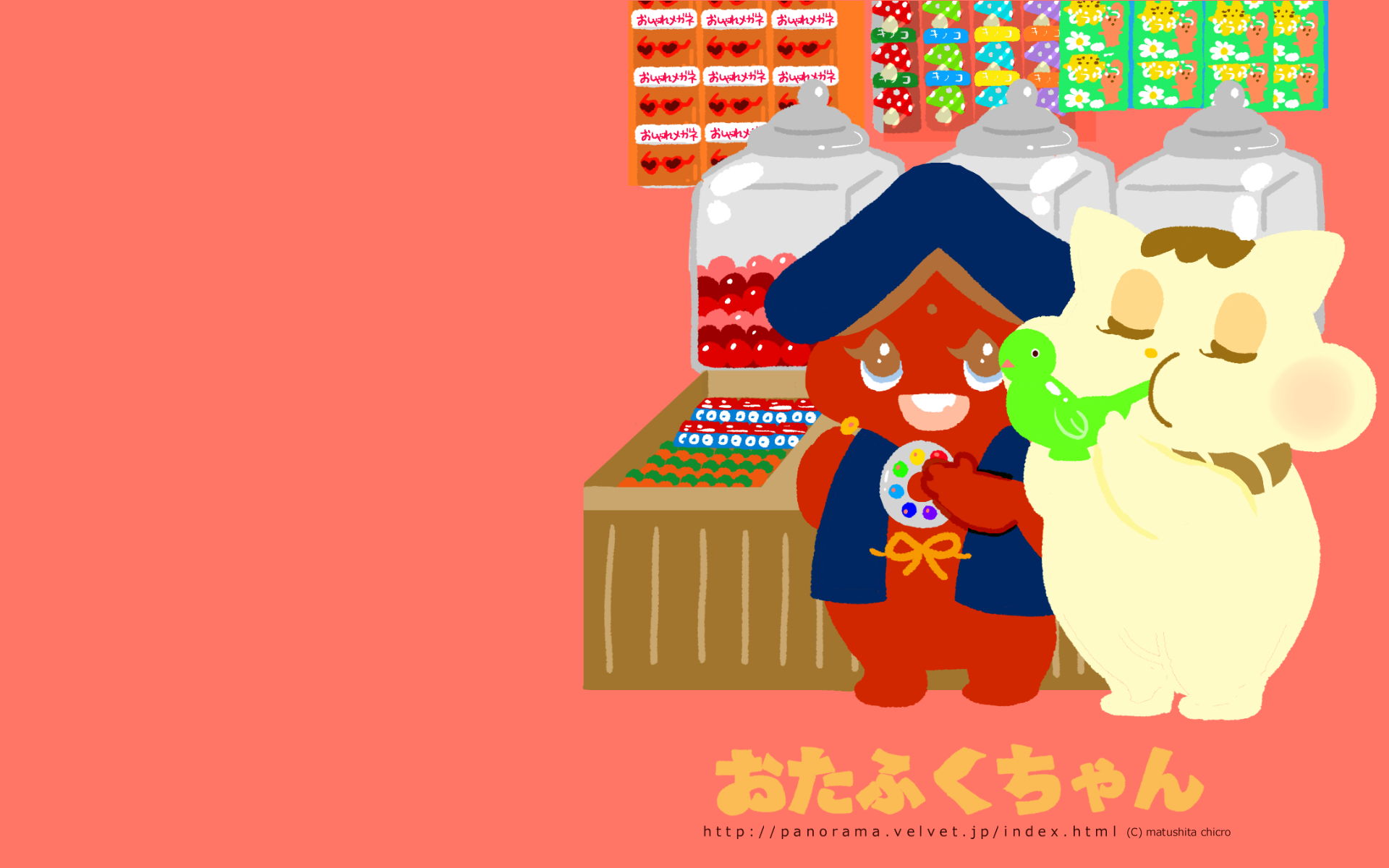 オリジナルキャラクター「おたふくちゃん」の壁紙です。1290×1200ピクセル。