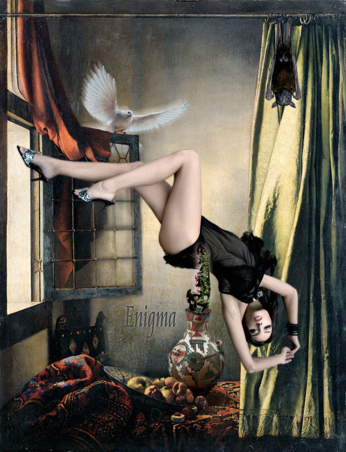 狩野山雪の襖絵である『老梅図襖』をモチーフに、その神秘的な生命力のイメージに誘われるように、画面に入魂していく女性の姿を表現しました。