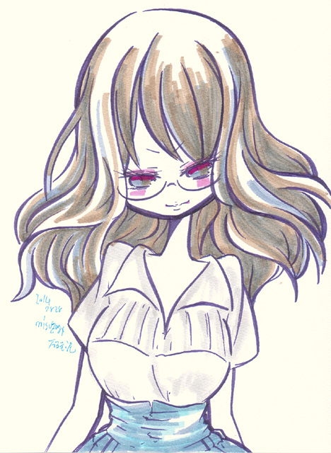 町で見かけた女の子をモチーフに。良い感じの色のサインペンを見つけたので15色まとめて買っちゃった。でも家で塗ってみたらなんかイメージと違うしなにより蛍光が入ってたのでスキャナが読んでくれない…肌が白いのは塗ってないのではなくスキャナが読んでくれなかったからですとほー