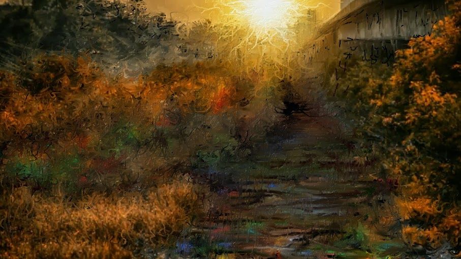 以前に描いた絵ですが、その中でも1~2の大好きな絵です、人によっては何が描いてあるか分からないとコメントを頂いた事もある絵ですが、僕の幼児期に育った実家の裏の空き地、学校から帰り遊んでまして、近くのうちから流れてくる赤胴鈴之助のラジオの音が帰宅の合図でした。