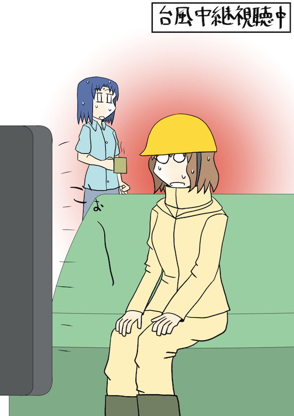 今日のスケッチ865「台風中継視聴中」