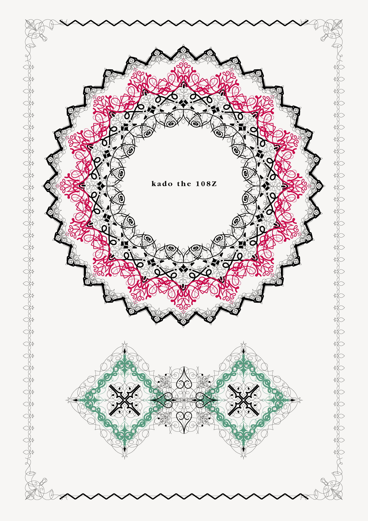 アドビイラストレーターにてアウトライン化した著作権フリーの角の装飾活字1080個で、かつてない無限の組み合わせを実現出来る「kado the 108Z」を販売中。http://fengfeel.tumblr.com/post/96699657402/kado-the-108z