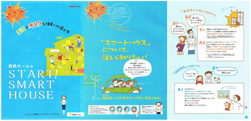 太陽光やHEMSなど、スマートハウスの解説したパンフレットのイラストを描かせてもらいました。