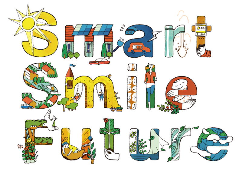 企業のイメージを3つの言葉で表現し(ライターさんが)、それをそれぞれの言葉に合うようにイラストを描かせてもらいました。