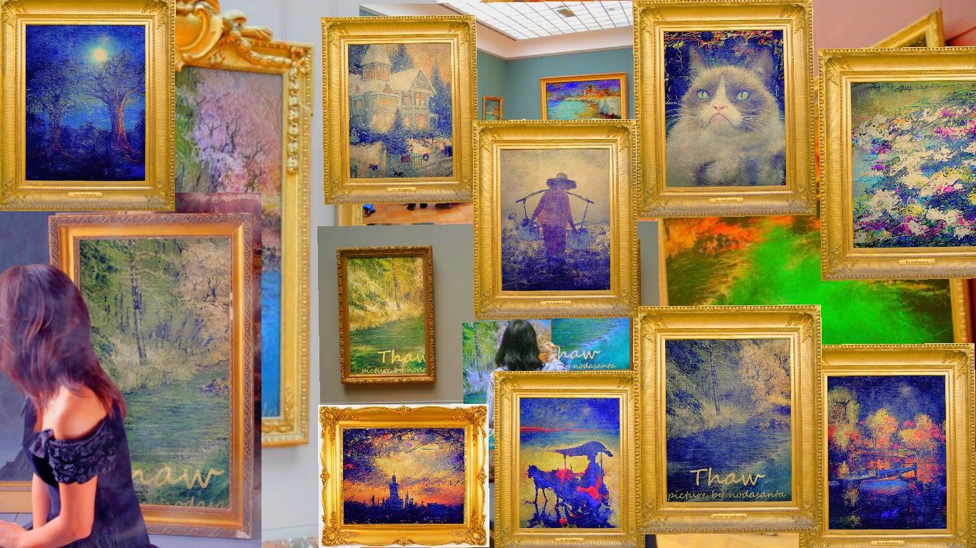 僕の描いた絵額に入れて、画廊風に並べた壁紙用に制作したものです。