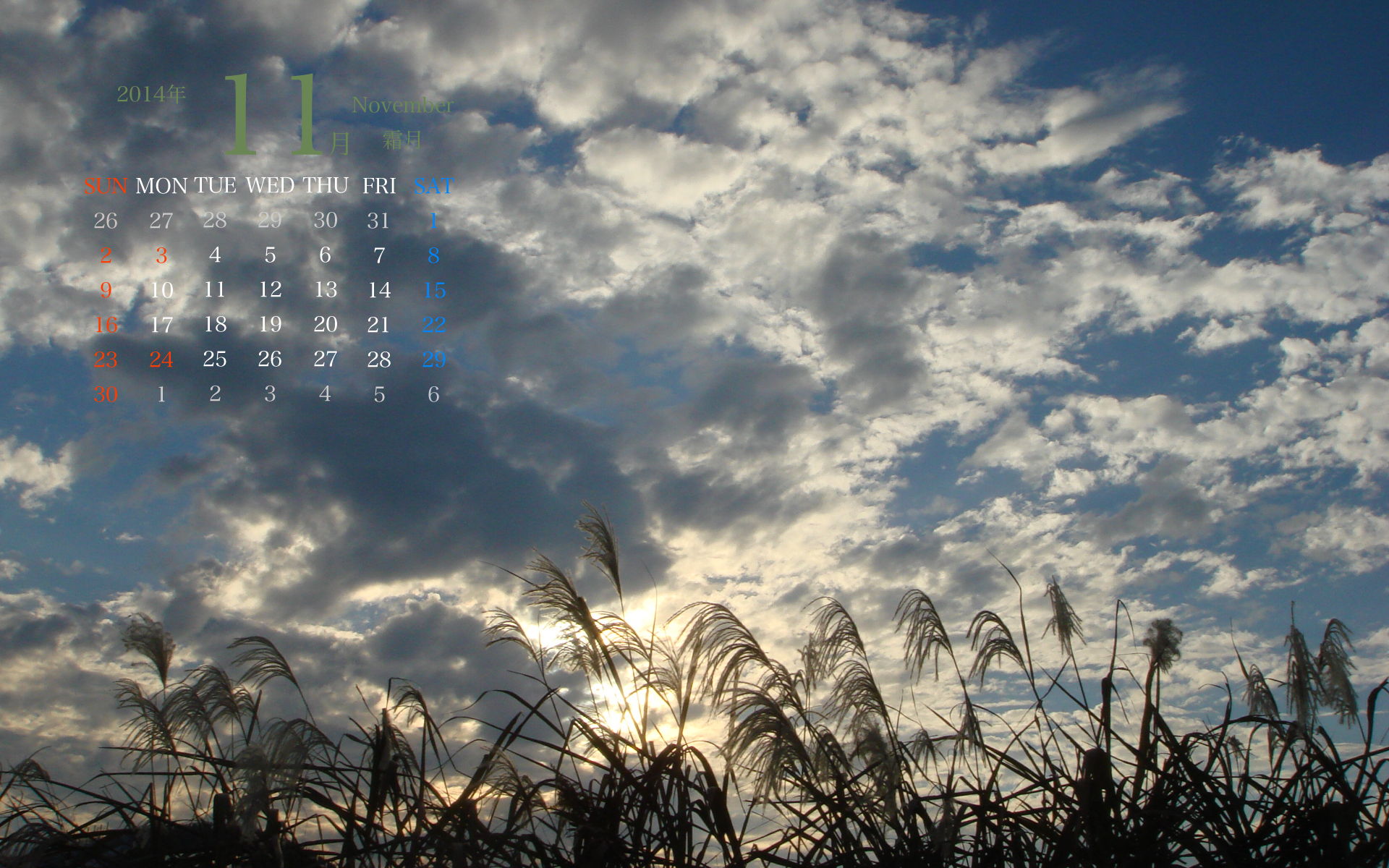 2014年11月PC壁紙(カレンダー付き)1(1920×1200)です。