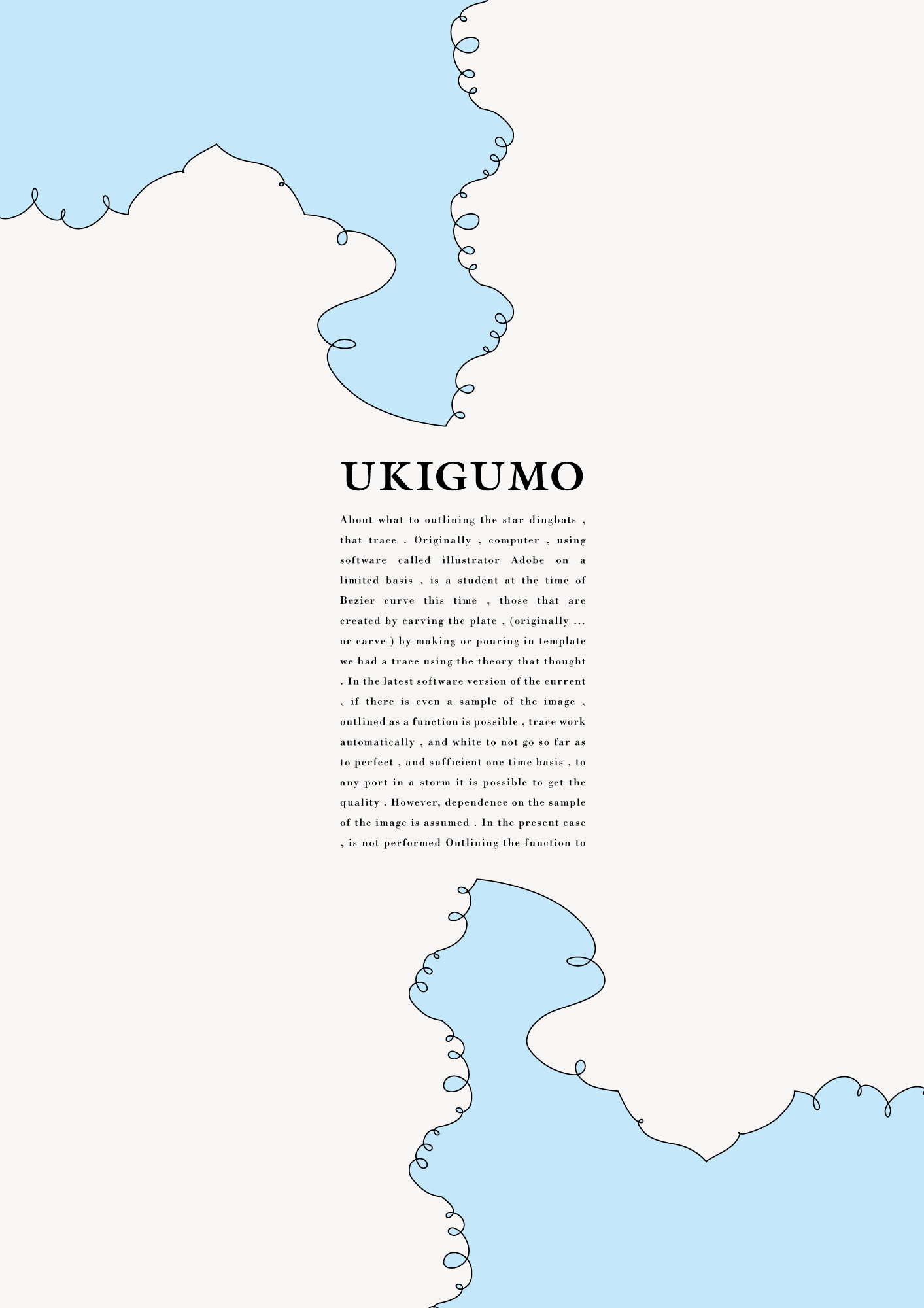 文字を書くように、文字がまるで音のような波長を描く様を、花形装飾活字に仕上げました。定着しない浮遊感を基礎とし、「水草」に漂う霧や雲のような表現を目指しました。