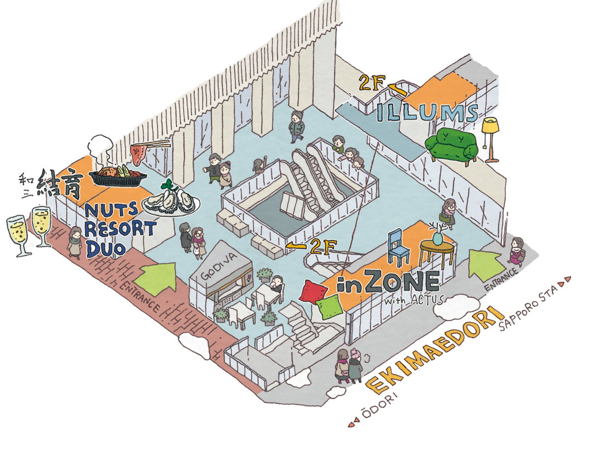 さっぽろ情報誌「poroco」12月号雑誌中、日生ビル「NOASIS3.4」についての挿絵