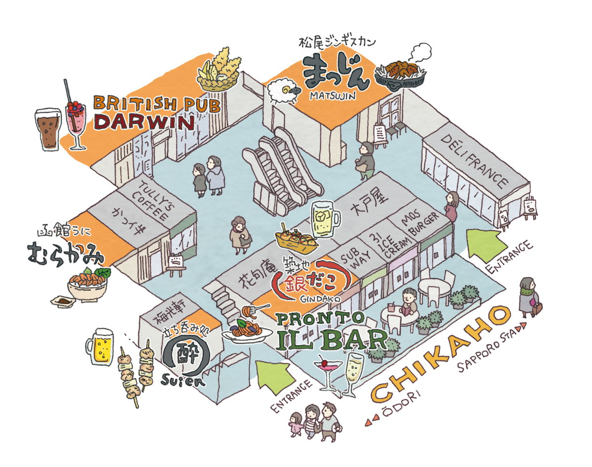 さっぽろ情報誌「poroco」12月号雑誌中、日生ビル「NOASIS3.4」についての挿絵
