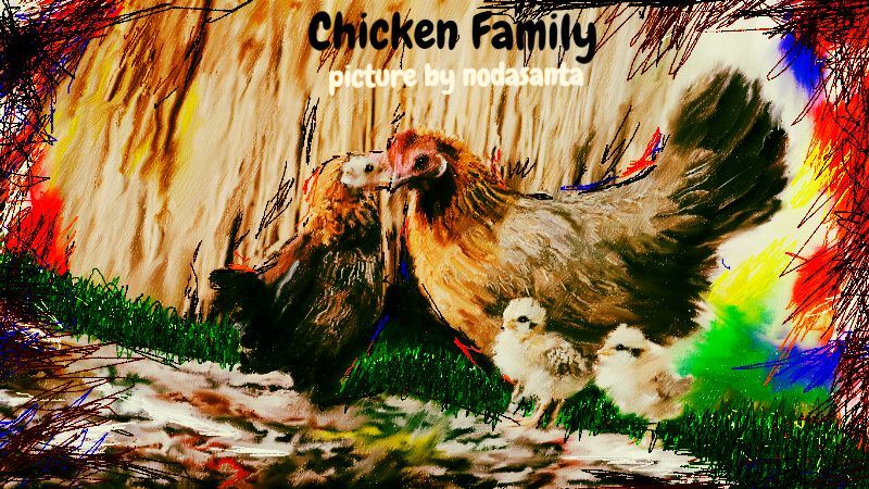 以前にお絵描きした作品で、ニワトリ家族がほのぼのした雰囲気を、イメージしてお絵描きしました。