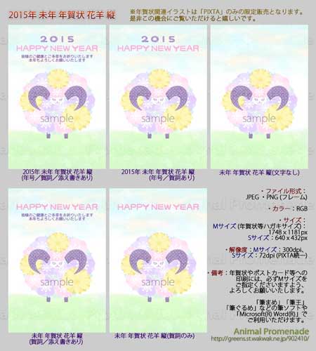 「2015年 未年 年賀状 花羊 縦」※PIXTAにて2015年版年賀状ダウンロード限定販売中です。