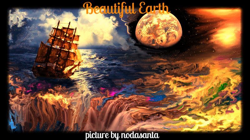 天地創造の様な絵画風にお絵描きしました、地球の自然と壮大な母なる海をイメージして制作しました。