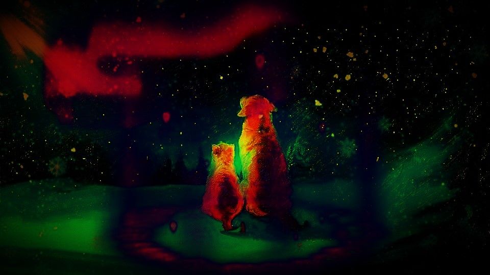 クリスマスの夜に二匹のラブカップルほのぼのしますね!