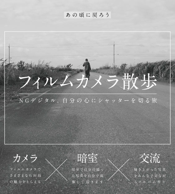 フィルムカメラをひとつ(or 2つ)渡され、石垣島を案内されながら様々な場所でシャッターを切っていただきます。